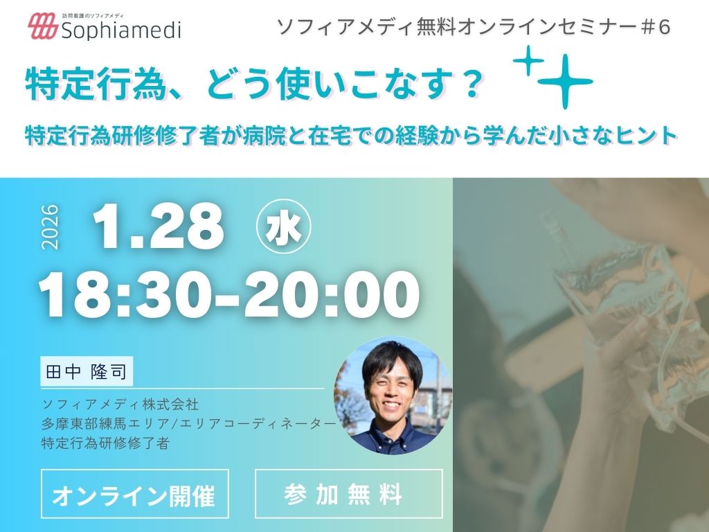 【ソフィアメディ無料セミナー第6講】1月28日(水)18:30~/特定行為、どう使いこなす? 病院と在宅での経験から学んだ小さなヒント