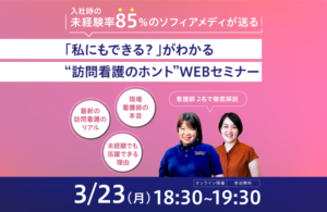 【ソフィアメディ無料セミナー】3月23日(月) 18:30~/「私にもできる?」がわかる”訪問看護のホント”WEBセミナー