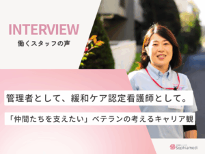 ソフィアメディの採用サイトにて、“管理者として、緩和ケア認定看護師として。「仲間たちを支えたい」ベテランの考えるキャリア観”と題した社員インタビュー記事を公開いたしました!