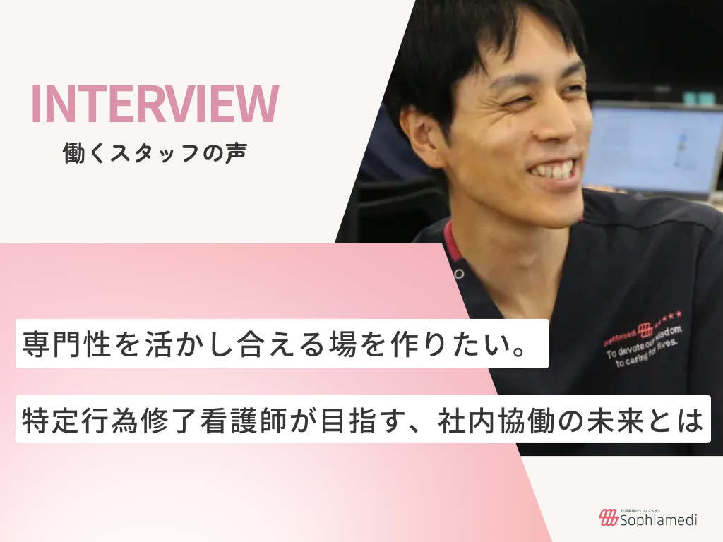 ソフィアメディの採用サイトにて、“専門性を活かし合える場を作りたい。特定行為修了看護師が目指す、社内協働の未来とは”と題した社員インタビュー記事を公開いたしました!